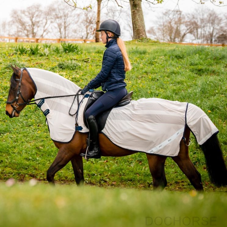 Deze vliegen uitrijdeken is de ideale manier om je paard te beschermen tegen vliegen en insecten tijdens het rijden, zonder gebruik te hoeven maken van vliegensprays!