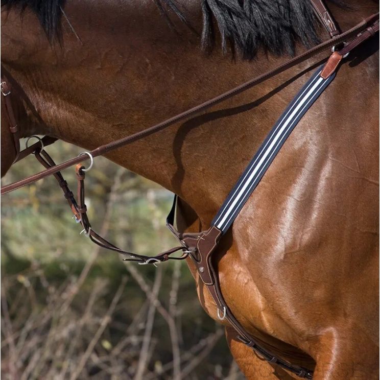 AntaresBorsttuig van Antares gemaakt van zacht Frans leder. Het borsttuig heeft een elastische band en aansluitingen voor een martingaal.