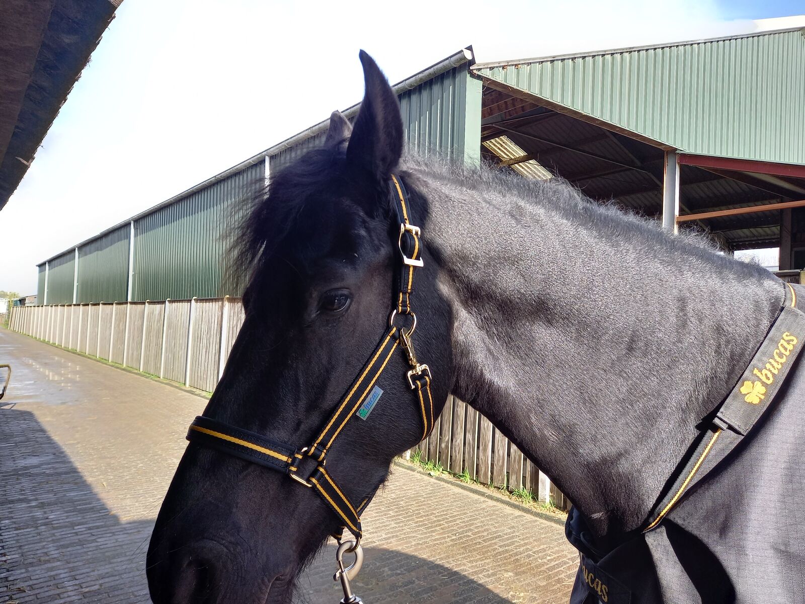 Past perfekt met de Bucas dekenMooie halster maar de "vol" maat valt te groot vooral rond de neus.voor mijn fries. De "cob" maat past net als de gesp op het laatst gat is