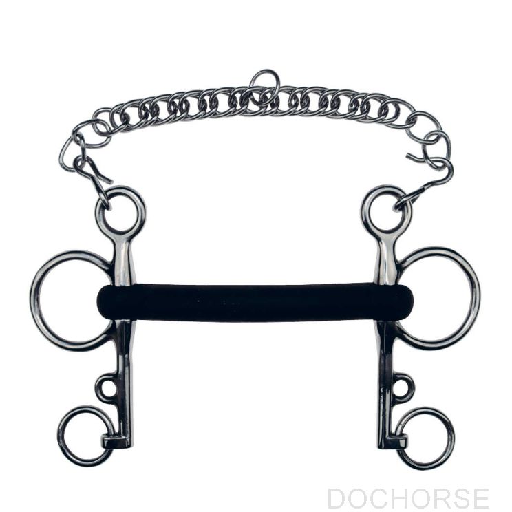 Rubber pelham bit met een ongebroken mondstuk. 14 cm lange scharen.