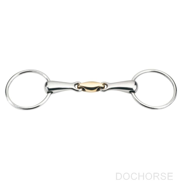 FeelingRVS watertrens met dik dubbel gebroken mondstuk en anatomisch Cyprium-tussenstuk: milde, stabiele aanleuning en betere bitacceptatie.
