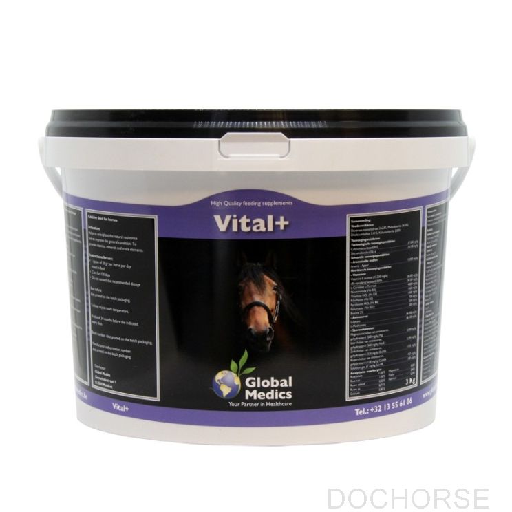 Vital + is een hoog gedoseerd vitamine- en mineralenpreparaat, geschikt voor veulens, volwassen paarden en senior paarden. Het bevat essentiële mineralen zoals calcium, fosfor en magnesium, die bijdragen aan een goede ontwikkeling van het beendergestel en de algehele gezondheid van je paard.