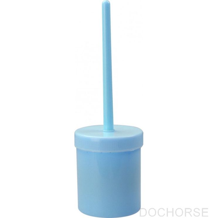 Hoefkwast van Hippotonic met zachte pvc-borstelharen in een kunststof doosje met draaideksel. Afmeting: Ø doosje 6 cm.