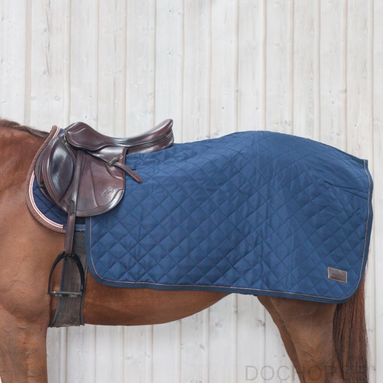 Uitrijdeken in een vierkant model. Ook geschikt om mee te longeren. De deken heeft een 160 grams vulling en is gevoerd met artificieel konijnenvacht.