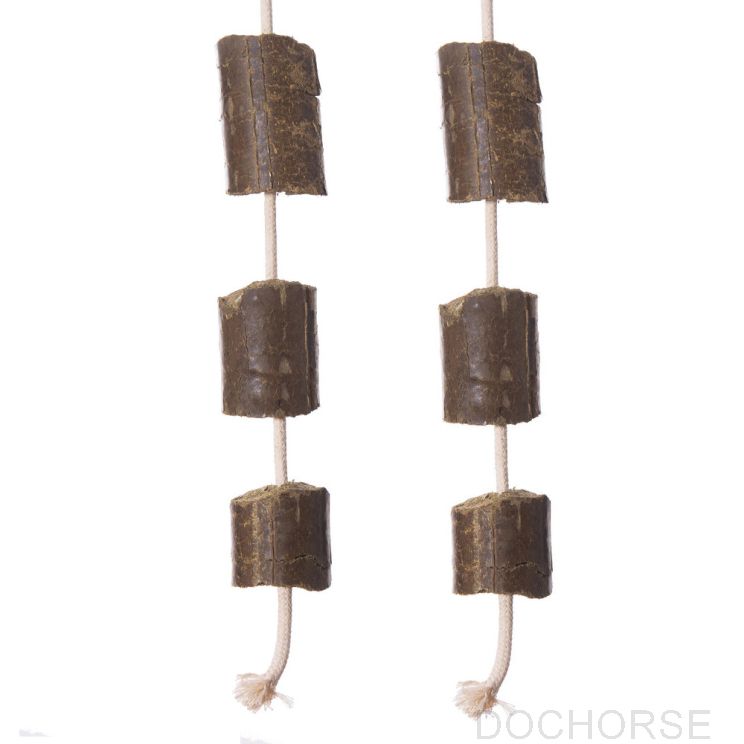 Paard is er dol op.Fijne manier om het paard op een hogere hoogte af en toe te laten eten omdat het stofvrij is. Wel los van de wand hangen want tegen de stalwand aangedrukt is deze met een paar uur op.