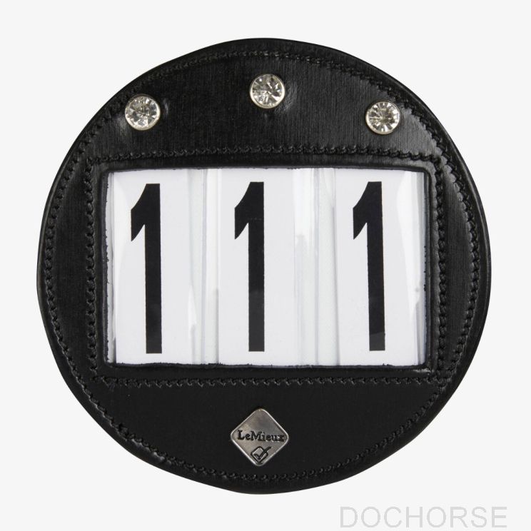 De lederen LeMieux nummerhouder maakt het mogelijk om op een chique manier je startnummer te tonen. Luxe diamante uitvoering.