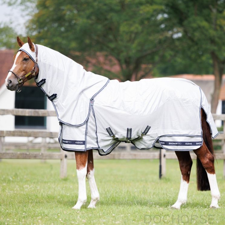 De Lemieux vliegendeken Kudos Shower-pro is ideaal voor de onvoorspelbare weersomstandigheden. Deze Lemieux vliegendeken heeft een waterdichte bovenkant en beschermt daarnaast je paard tegen UV-straling van de zon.