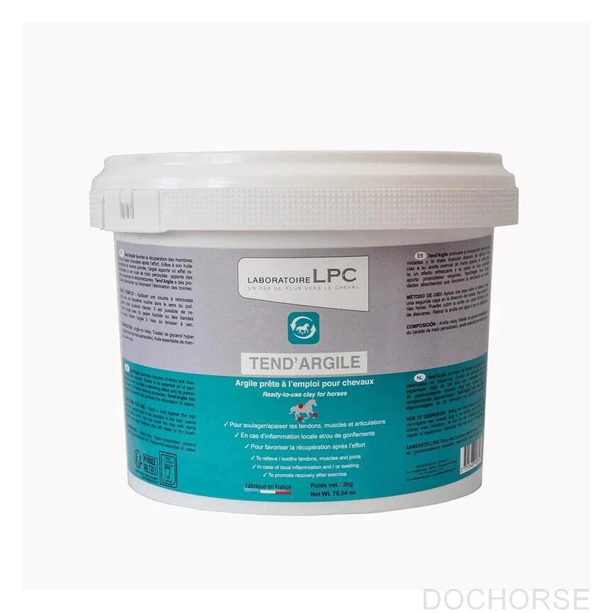 LPCDe LPC Tend’Argile Klei verzorgt en ondersteund de spieren van je paard na een training. Door de pepermunt olie heeft de klei een verfrissend effect.