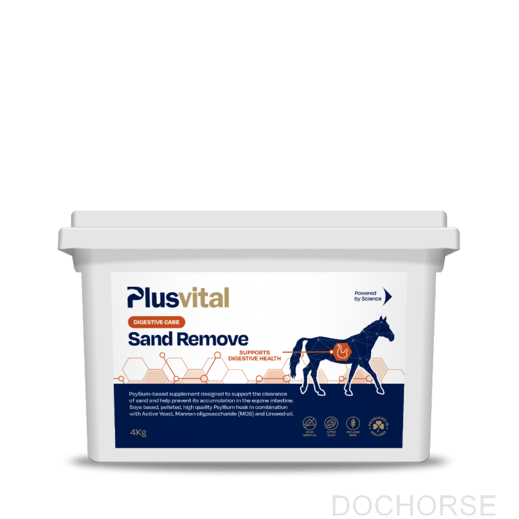 Plusvital Sand Remove is een op psyllium gebaseerde, gepelleteerde aanvulling die is ontwikkeld ter ondersteuning van de natuurlijke afvoer van zand uit de darmen van het paard en helpt ophoping te voorkomen.