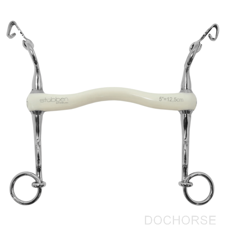 Het mondstuk van de Fine Line Flex Dressuurstang is gemaakt van flexibel, voedselveilig PU en biedt een warmer gevoel in de mond, zelfs bij lagere temperaturen.